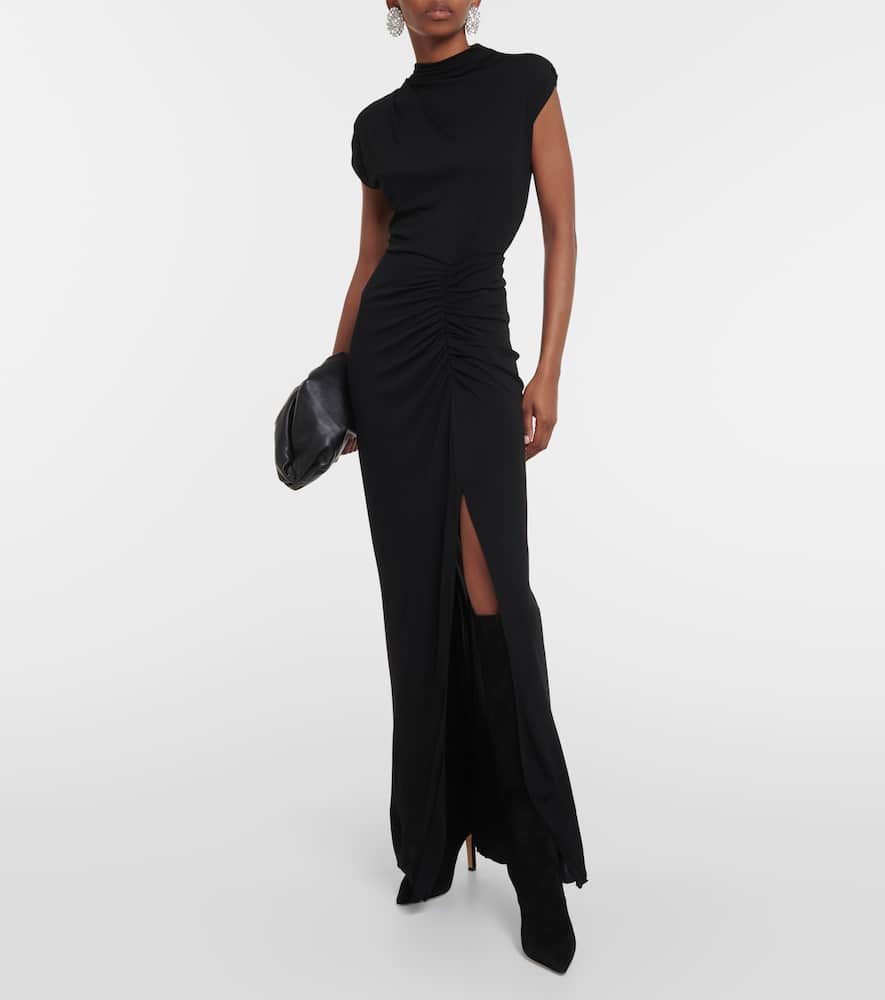 Material: 100% viscose. Care instructions: dry clean. Made in China. Designer color name: Black. Shoulder pads. Closure: zipped back. Shop the latest Diane von Furstenberg Maxi Dresses for women.