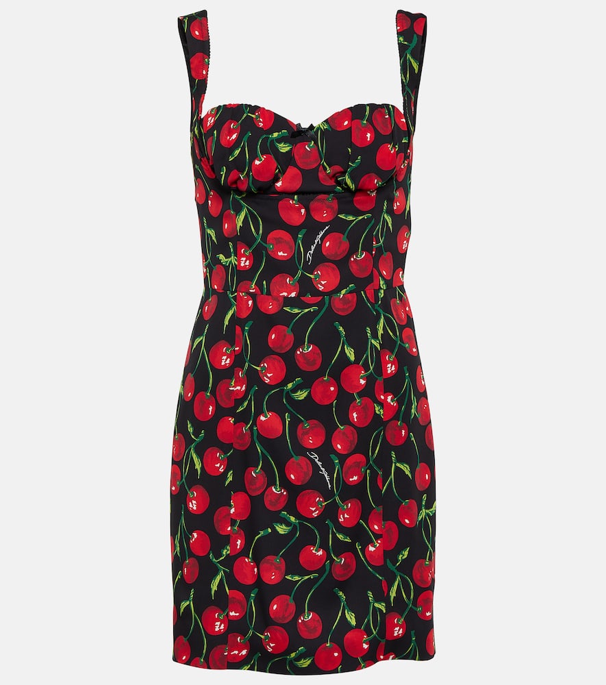 Made in Italy. Material: 11% elastane, 89% silk. Care instructions: dry clean. Designer color name: Ciliegie Fdo Nero. Closure: zipped back. Lining: 35% polyamide, fully lined, 62% polyester, 3% elastane. Shop the latest Dolce&Gabbana Mini Dresses for women.