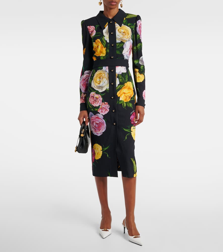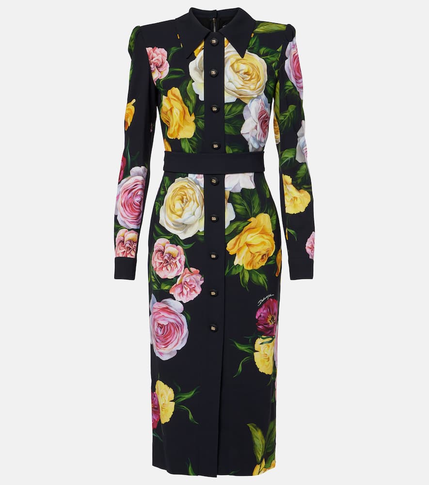 Material: 97% viscose, 3% elastane. Care instructions: dry clean. Made in Italy. Designer color name: Peonie/ Rose F.Nero. Lining: 91% silk, 9% elastane. Closure: invisible zipper. Attached belt. Cuff: one button. Shop the latest Dolce&Gabbana Midi Dresses for women.