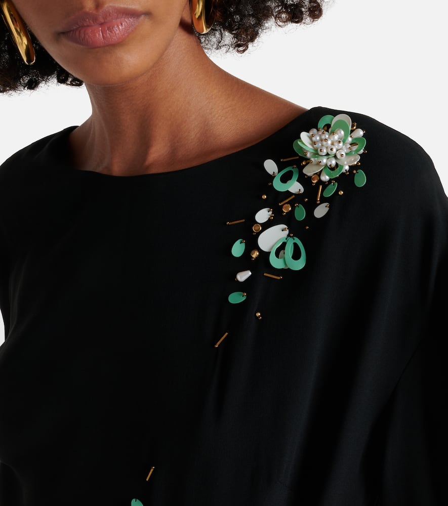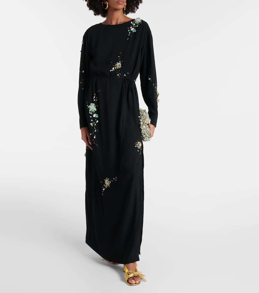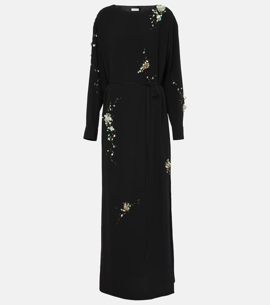 Material: 61% viscose, 39% acetate. Care instructions: dry clean. Made in India. Designer color name: Black. Lining: 100% viscose. Self-tie belt. Detachable belt. Shop the latest Dries Van Noten Midi Dresses for women.