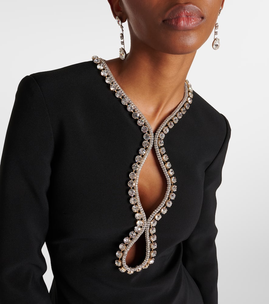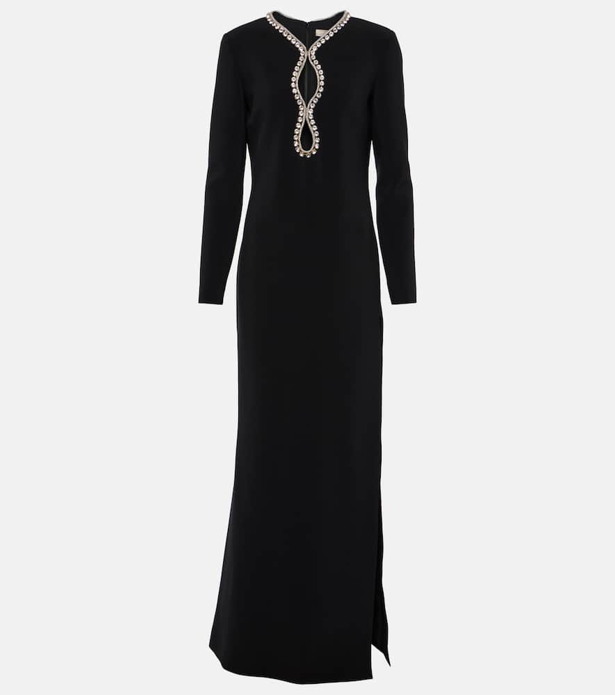 Material: 95% polyester, 5% elastane. Care instructions: dry clean. Made in Italy. Designer color name: Black. Trim: 100% glass. Closure: zipped back. Pockets: side slit pockets. Shop the latest Elie Saab Maxi Dresses for women.