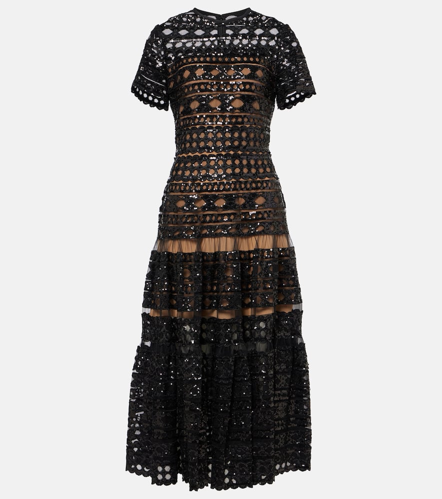 Material: 49% polyester, 39% ramie, 10% polyamide, 2% silk. Care instructions: dry clean. Made in Lebanon. Designer color name: Black. Lining: 100% silk. Closure: invisible zipper. Shop the latest Elie Saab Midi Dresses for women.