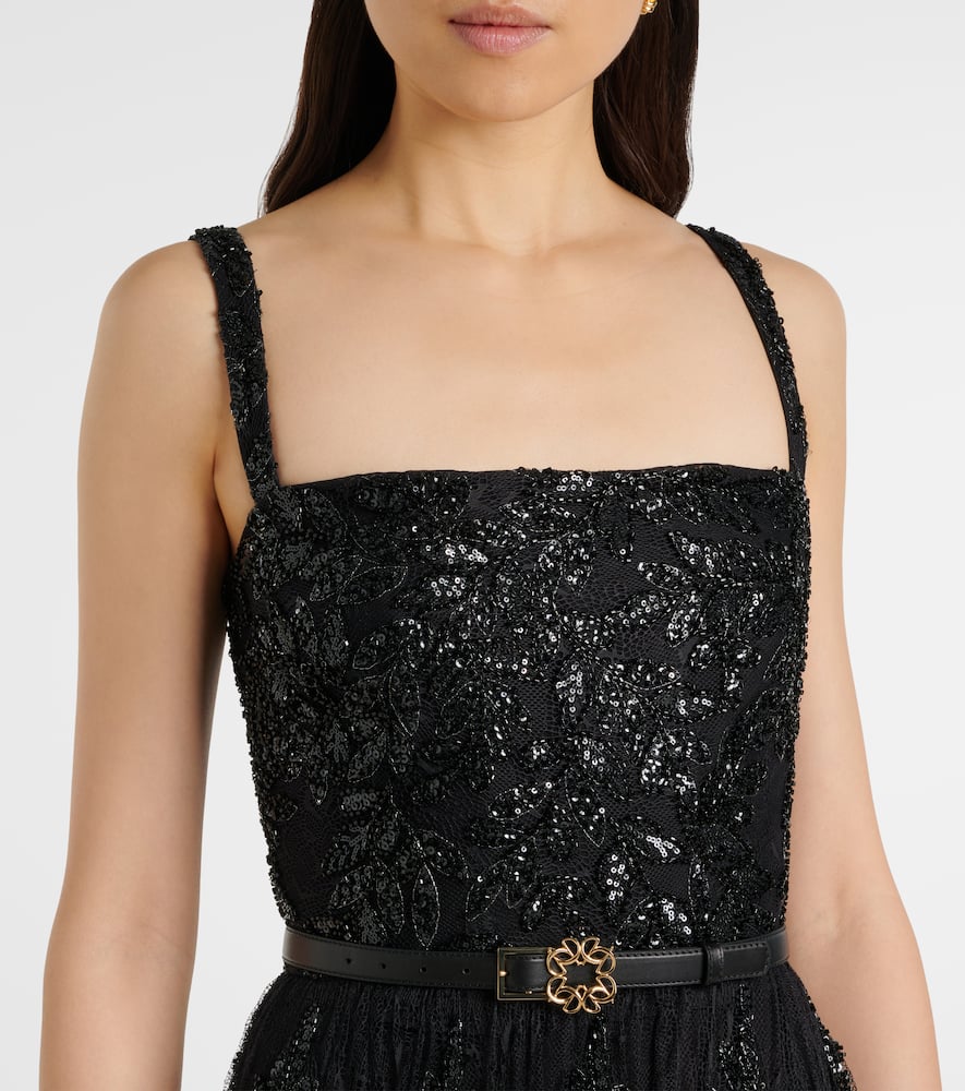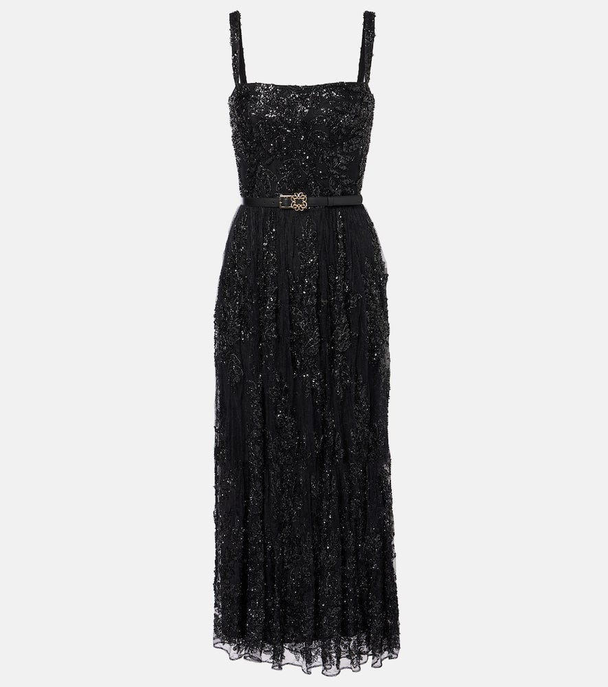 Material: 41% silk, 29% polyamide, 20% polyester, 10% elastane. Care instructions: dry clean. Made in Lebanon. Designer color name: Black. Detachable belt. Closure: zip and hook fastening. Lining: 100% silk. Shop the latest Elie Saab Midi Dresses for women.
