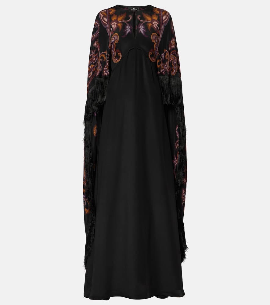 Material: 100% silk. Care instructions: dry clean. Made in Italy. Designer color name: Print On Black Base. Trim: 100% acetate. Closure: belted waist. Shop the latest Etro Maxi Dresses for women.