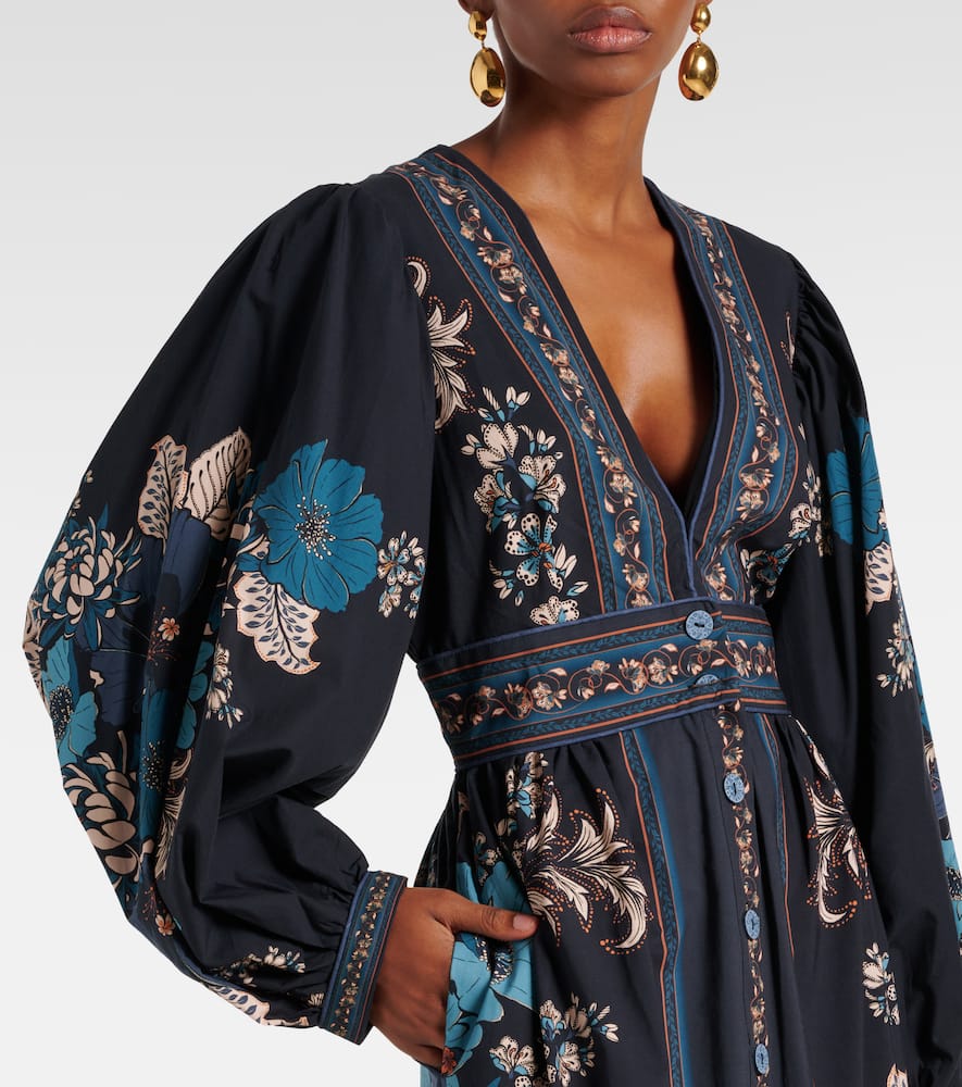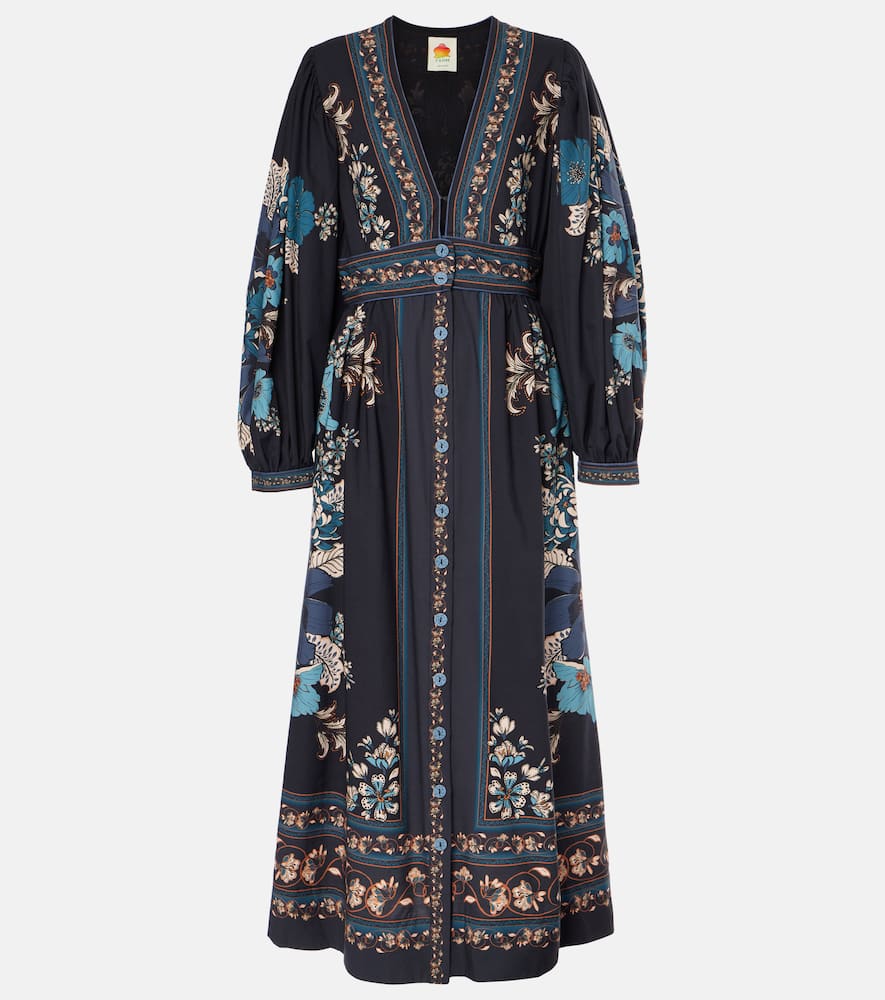 Material: 100% cotton. Care instructions: machine wash. Made in Turkey. Designer color name: BLOSSOM TAPESTRY BLACK. Lining: 100% viscose. Lining II: 100% polyester. Closure: buttoned front. Shop the latest Farm Rio Midi Dresses for women.