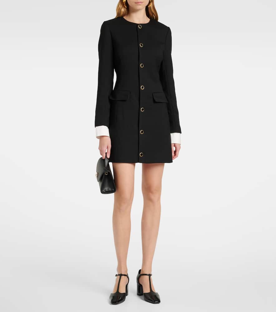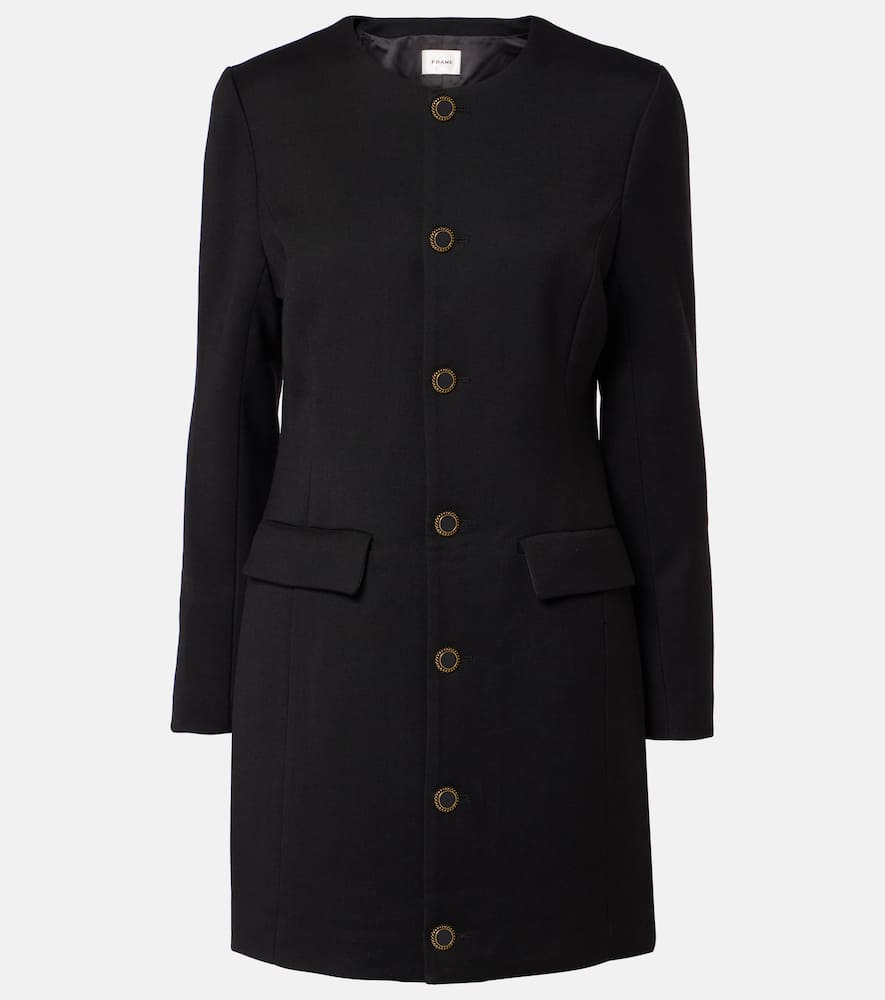 Material: 68% polyester, 30% viscose, 2% elastane. Care instructions: dry clean. Made in China. Designer color name: Black. Closure: button fastening. Pockets: flap pockets. Lining: 55% polyester, 45% viscose. Buttoned cuffs. Shop the latest Frame Mini Dresses for women.