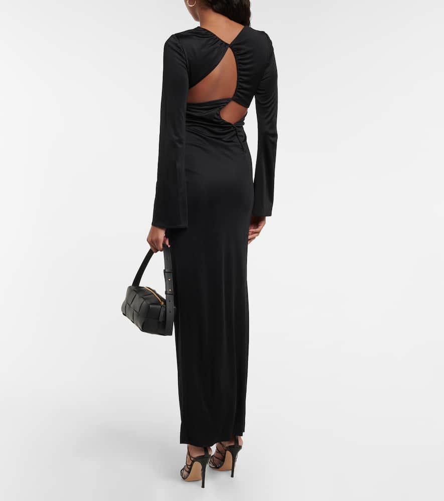 Lining: 100% polyester, partially lined. Made in the UK. Closure: zipped side. Designer color name: Black. Material: 100% viscose. Care instructions: dry clean. Shop the latest Galvan Maxi Dresses for women.