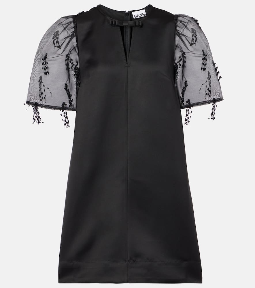 Material: 100% polyester. Care instructions: machine wash at 30 degrees. Made in India. Designer color name: Black. Closure: zipper, hook fastening. Shop the latest Ganni Mini Dresses for women.