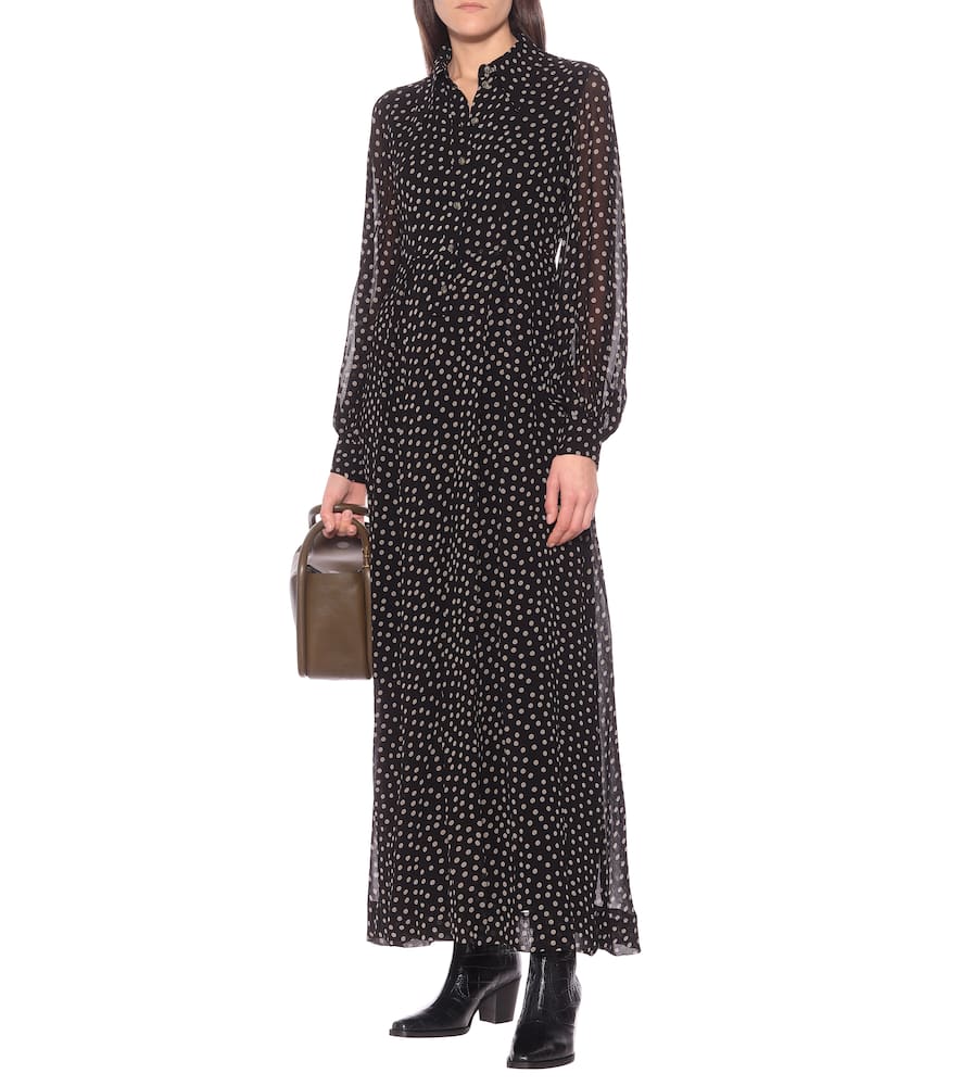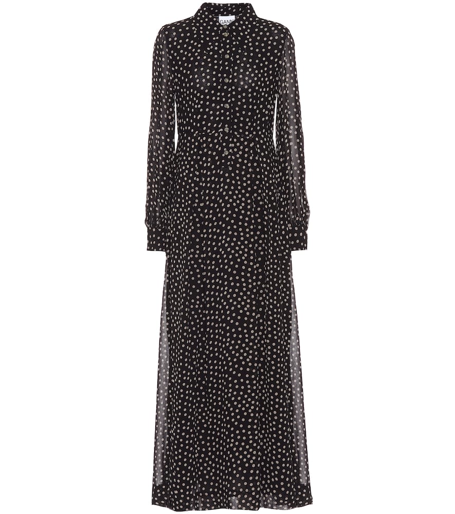 Lining: 100% viscose, fully lined, partially lined. Care instructions: machine wash at 30 degrees. Designer color name: Black. Closure: partially buttoned front. Buttoned cuffs. Material: 100% viscose. Shop the latest Ganni Maxi Dresses for women.