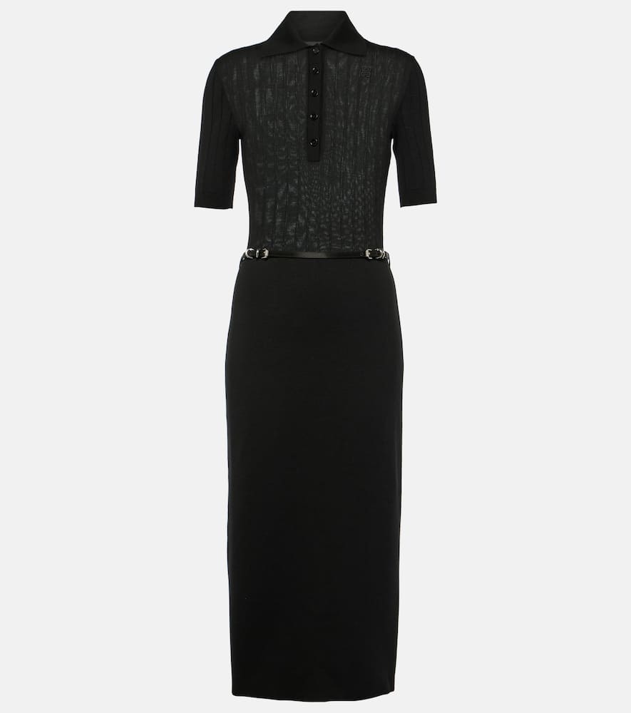 Material: 100% wool. Care instructions: dry clean. Made in Italy. Designer color name: Black. Closure: partially buttoned front. Attached belt. Shop the latest Givenchy Midi Dresses now.