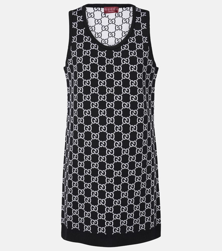 Material: 92% wool, 7% polyamide, 1% elastane. Care instructions: dry clean. Made in Italy. Designer color name: Black/White. Trim: 100% wool. Shop the latest Gucci Mini Dresses for women.
