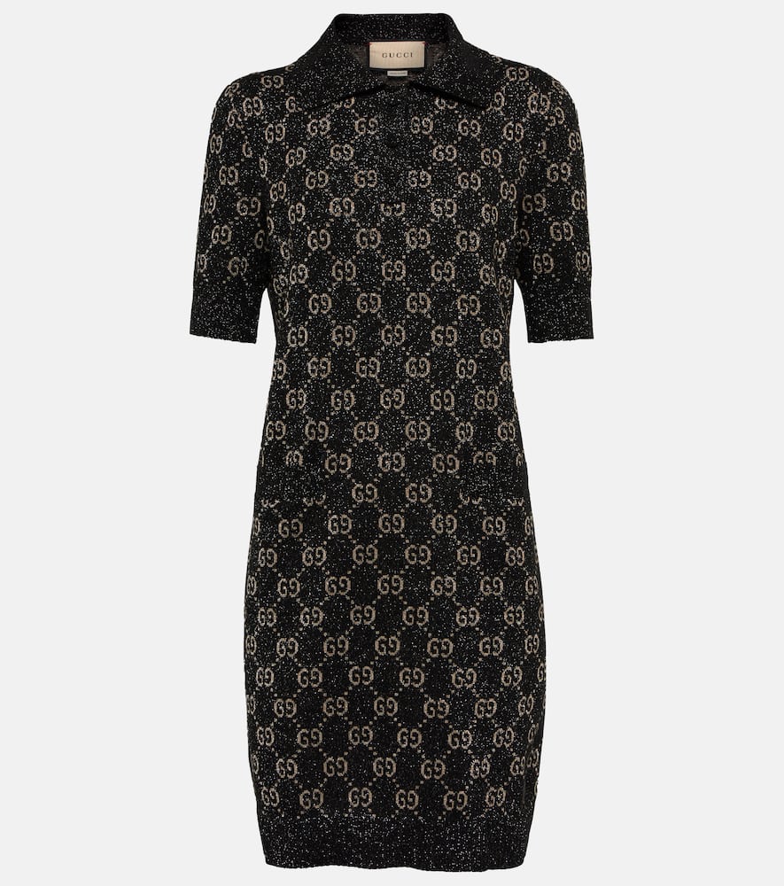 Material II: 85% cotton, 6% metallic fibres, 1% elastane, 8% polyamide. Made in Italy. Closure: partially buttoned front. Designer color name: Black/Beige/Gold. Material: 4% polyamide, 9% metallic fibres, 87% cotton. Pockets: slit pockets. Care instructions: dry clean. Shop the latest Gucci Mini Dresses for women.