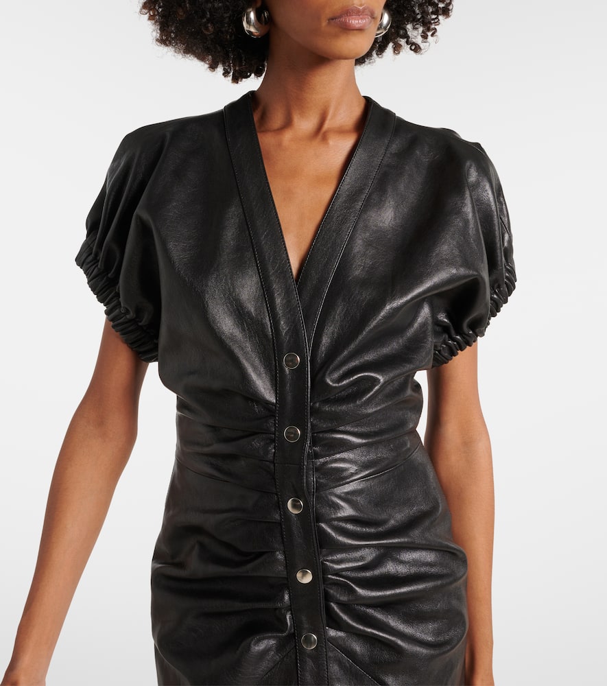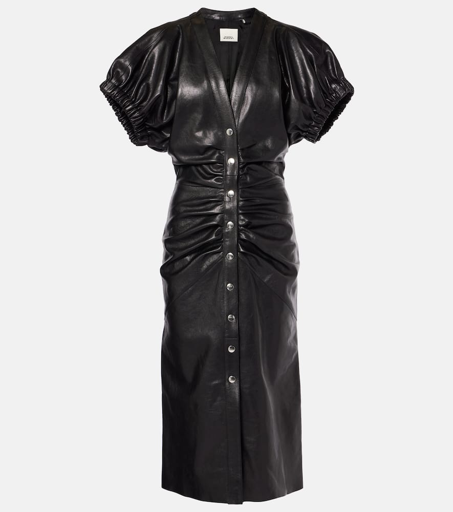 Material: 100% leather. Care instructions: specialist clean. Made in France. Designer color name: Black. Lining: 100% viscose. Closure: snap-buttoned front. Contains non-textile parts of animal origin. Shop the latest Isabel Marant Midi Dresses for women.
