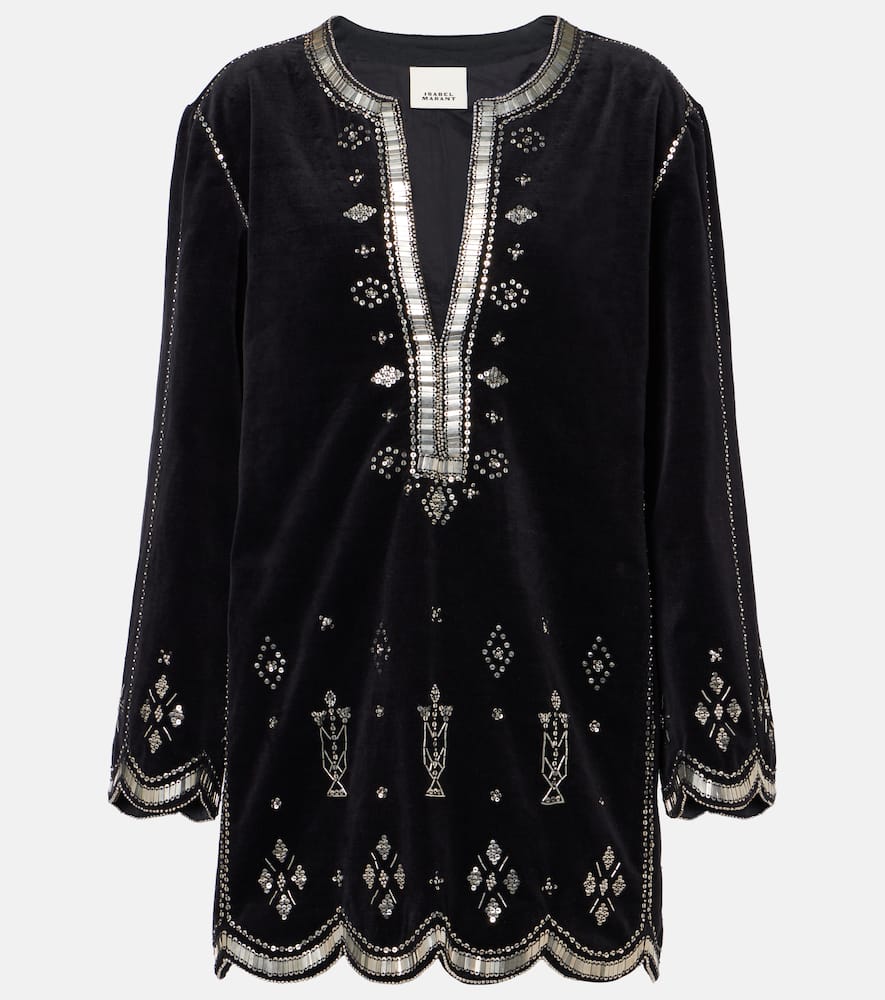 Isabel Marant Helene embellished cotton velvet minidress