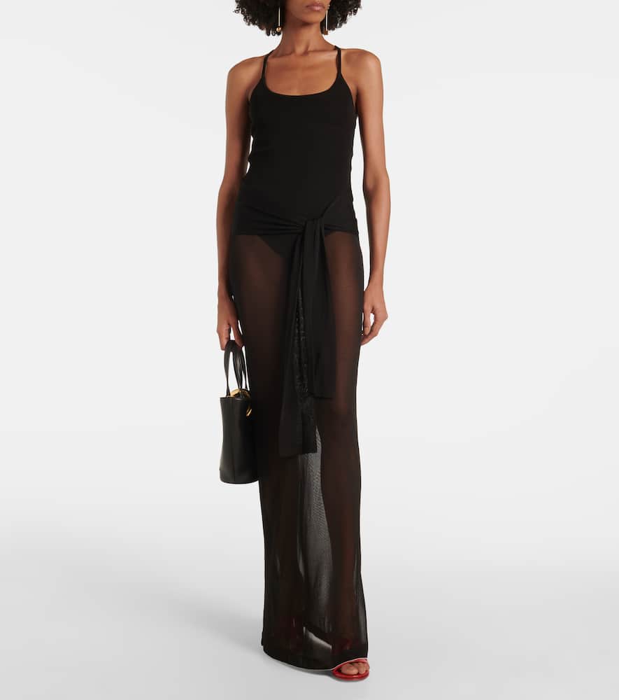 Material: 79% viscose, 19% polyamide, 2% elastane. Care instructions: hand wash. Made in Portugal. Designer color name: Black. Shop the latest Jacquemus Maxi Dresses for women.