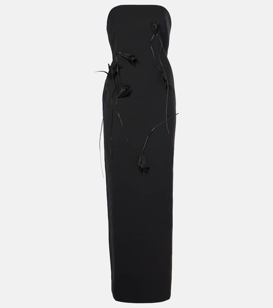 Jacques Wei Floral-appliqué wool maxi dress