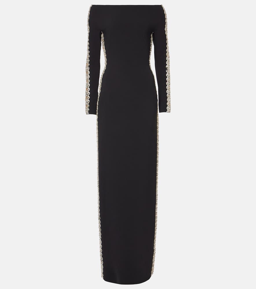 Material: 92% polyester, 8% polyurethane. Care instructions: dry clean. Made in China. Designer color name: Liquorice. Lining: 100% polyester. Closure: invisible zipper, zip and hook fastening. Shop the latest Jenny Packham Maxi Dresses for women.