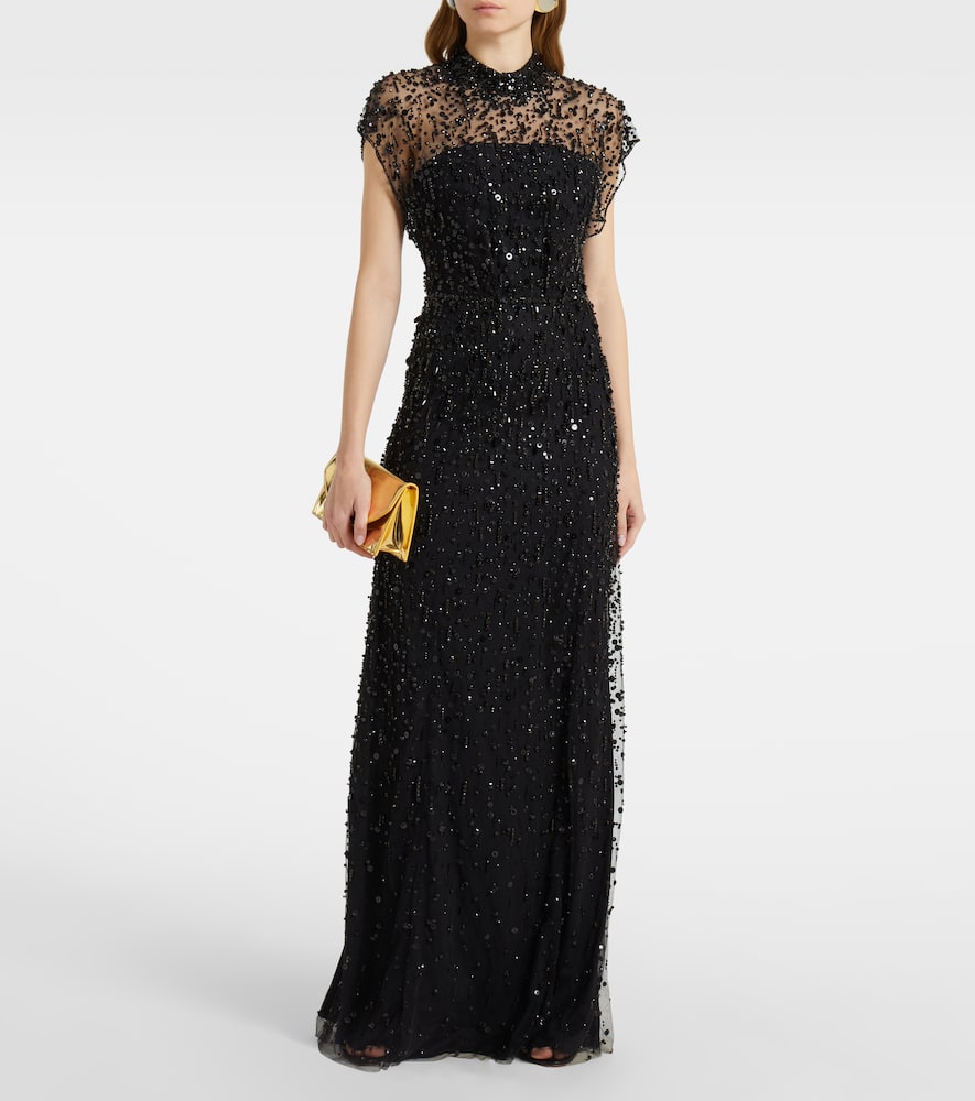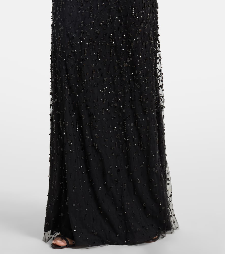 Material: 100% nylon. Care instructions: dry clean. Made in India. Designer color name: Liquorice. Lining: 100% polyester. Closure: invisible zipper. Shop the latest Jenny Packham Maxi Dresses for women.