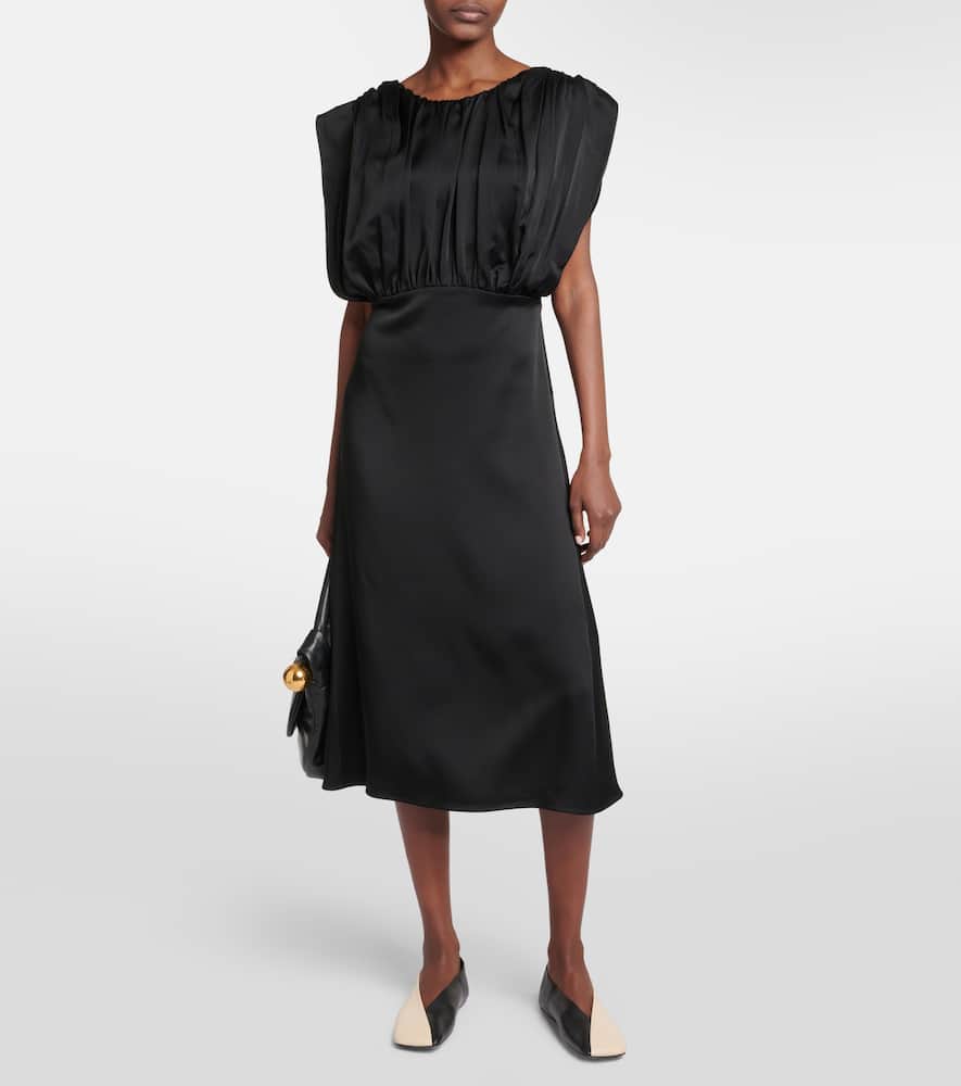 Material: 74% acetate, 26% viscose. Care instructions: dry clean. Made in Italy. Designer color name: Black. Lining: 100% viscose. Closure: zipper, hook fastening. Shop the latest Jil Sander Midi Dresses for women.