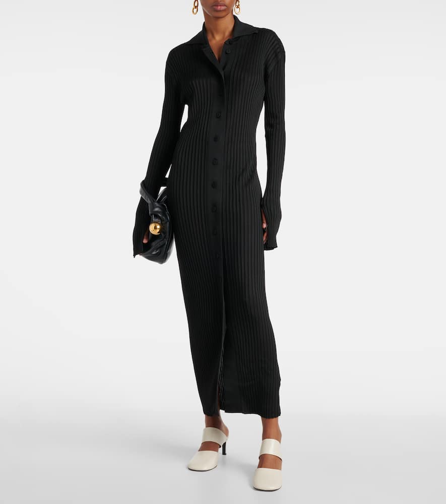 Material: 100% viscose. Care instructions: do not wash. Made in Italy. Designer color name: Black. Closure: buttoned front. Collar: classic (Straight point). Shop the latest Jil Sander Midi Dresses for women.