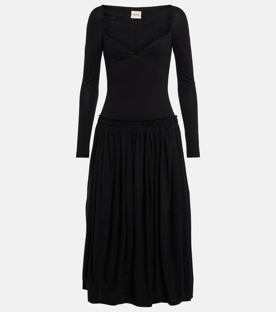 Material: 98% cotton, 2% elastane. Care instructions: dry clean. Made in Portugal. Designer color name: Black. Shop the latest Khaite Midi Dresses for women.