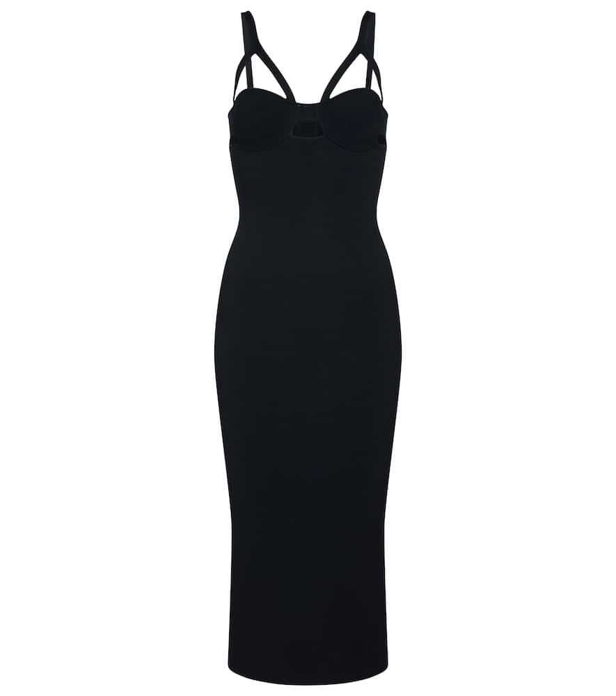 Made in Italy. Closure: zipped side, hook-fastening back. Material: 83% viscose, 17% polyester. Designer color name: Black. Care instructions: dry clean. Shop the latest Khaite Midi Dresses for women.
