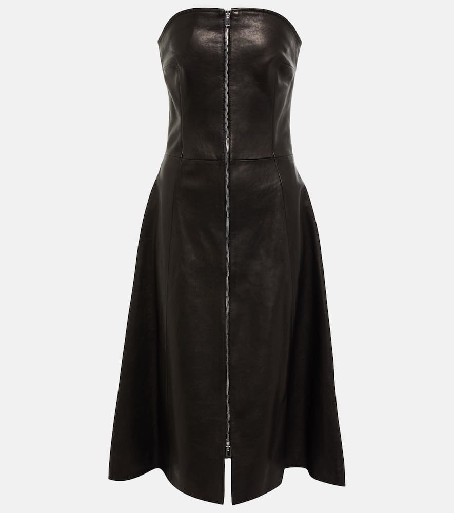 Material: 100% lamb leather. Made in the USA. Closure: two-way zipped front. Designer color name: Black. Care instructions: do not wash. Shop the latest Khaite Midi Dresses for women.