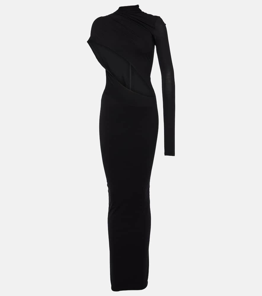Material: 85% silk, 15% elastane. Care instructions: dry clean. Made in the USA. Designer color name: Black. Closure: zipped back, invisible zipper. Shop the latest LaQuan Smith Maxi Dresses for women.