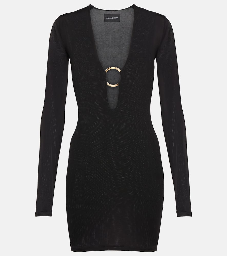 Material: 90% viscose, 10% elastane. Made in the USA. Care instructions: dry clean. Designer color name: Black. Shop the latest Louisa Ballou Mini Dresses for women.
