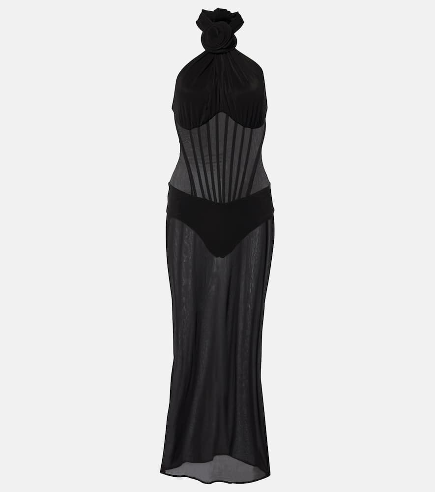 Magda Butrym Floral-appliqué sheer cocktail dress