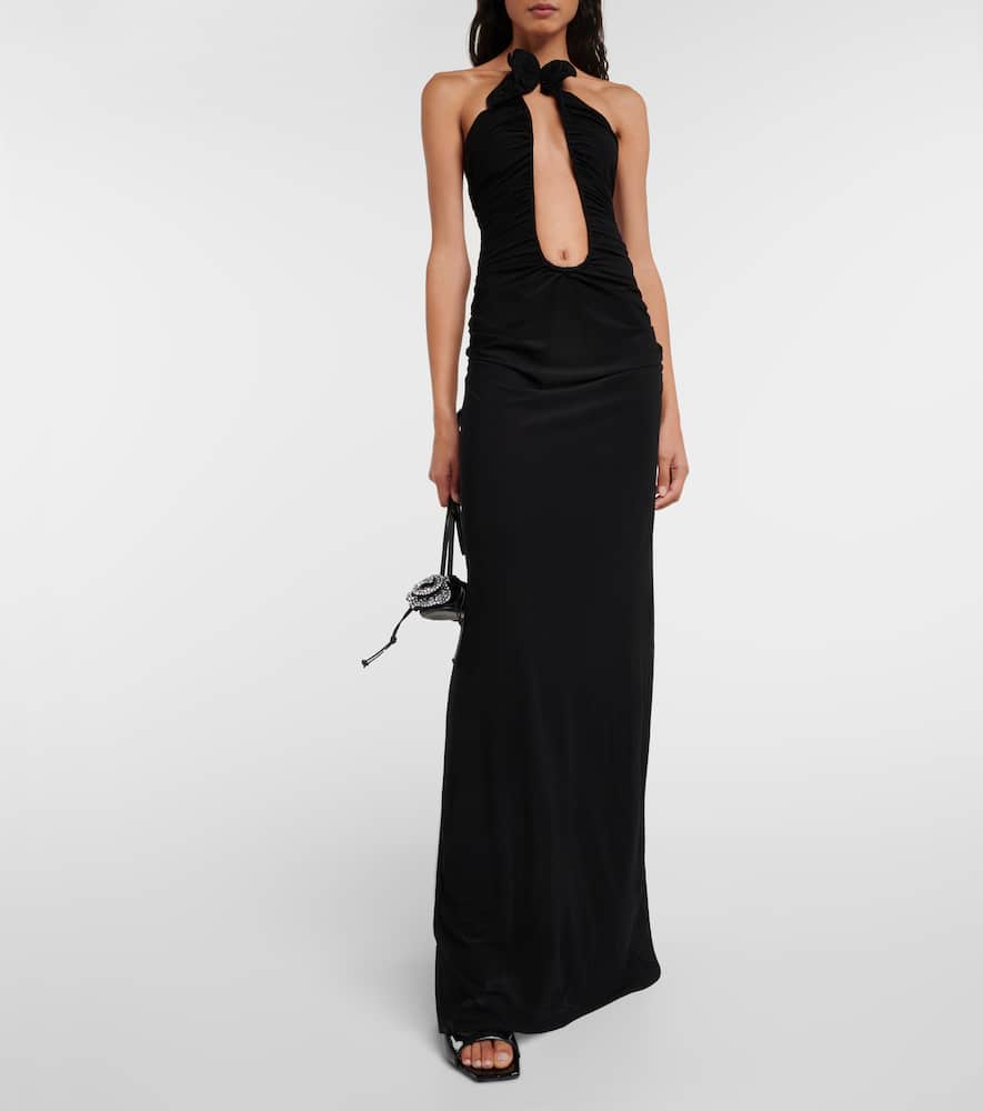 Material: 85% viscose, 15% elastane. Care instructions: dry clean. Made in Poland. Designer color name: Black. Closure: zipper fly, button fastening. Shop the latest Magda Butrym Maxi Dresses for women.