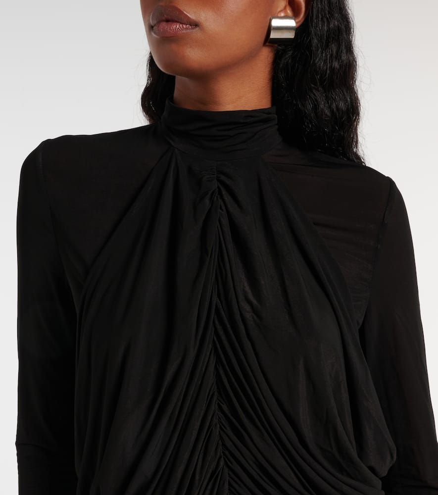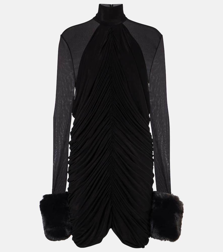 Magda Butrym Gathered faux fur-trimmed mesh minidress