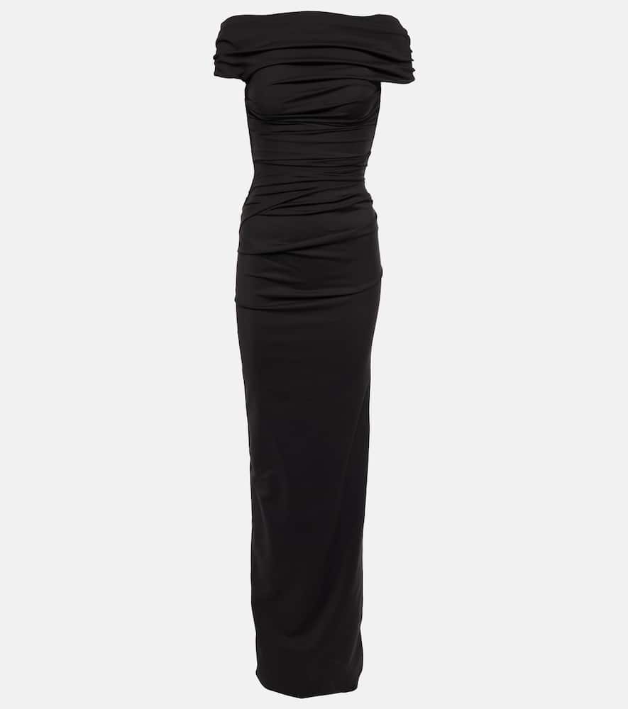 Made in Italy. Closure: zipped side. Material: 48% cotton, 45% polyamide, 7% elastane. Designer color name: Black. Care instructions: dry clean. Shop the latest Maticevski Maxi Dresses for women.
