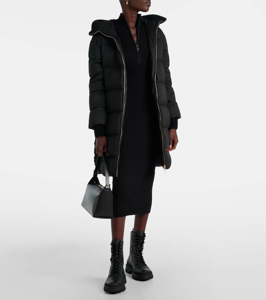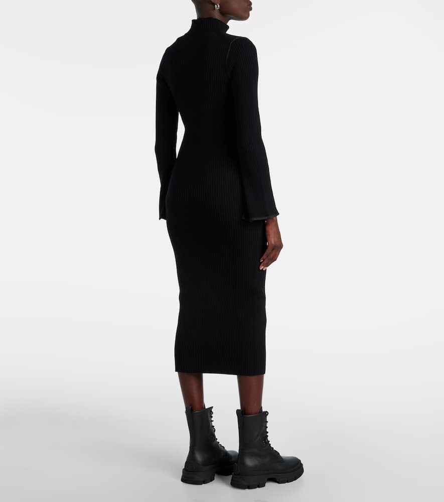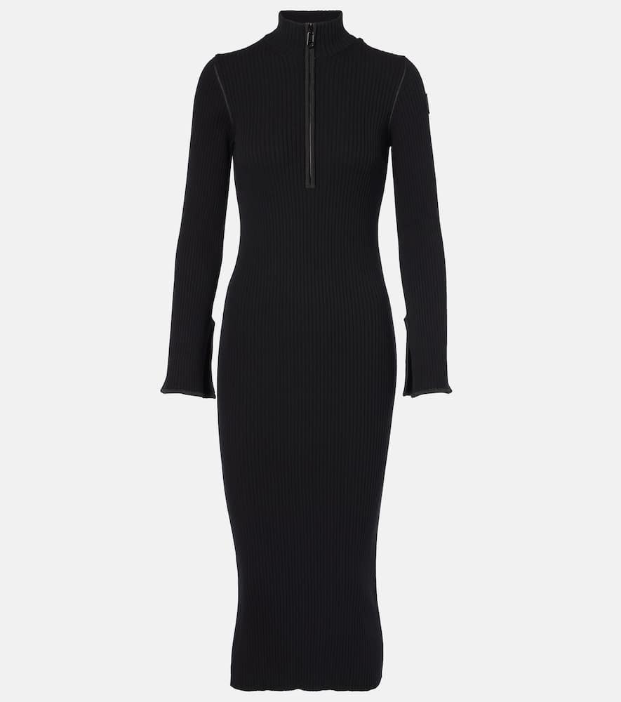 Material: 67% viscose, 33% polyester. Care instructions: hand wash. Made in Romania. Designer color name: Black. Closure: partially zipped front. Collar: mockneck. Shop the latest Moncler Midi Dresses for women.