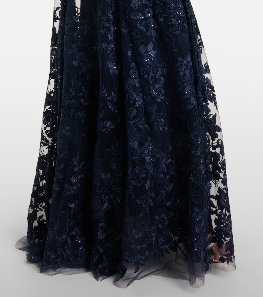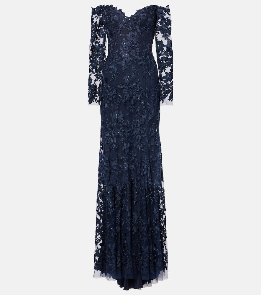 Material: 85% rayon, 15% nylon. Care instructions: spot clean. Made in the USA. Designer color name: Lapis Noir. Material II: 100% nylon. Material III: 100% cotton. Lining: 100% silk. Closure: concealed zipper. Shop the latest Monique Lhuillier Midi Dresses for women.