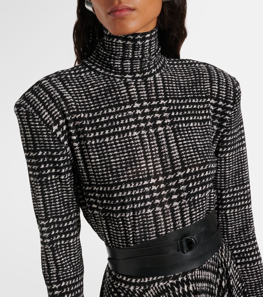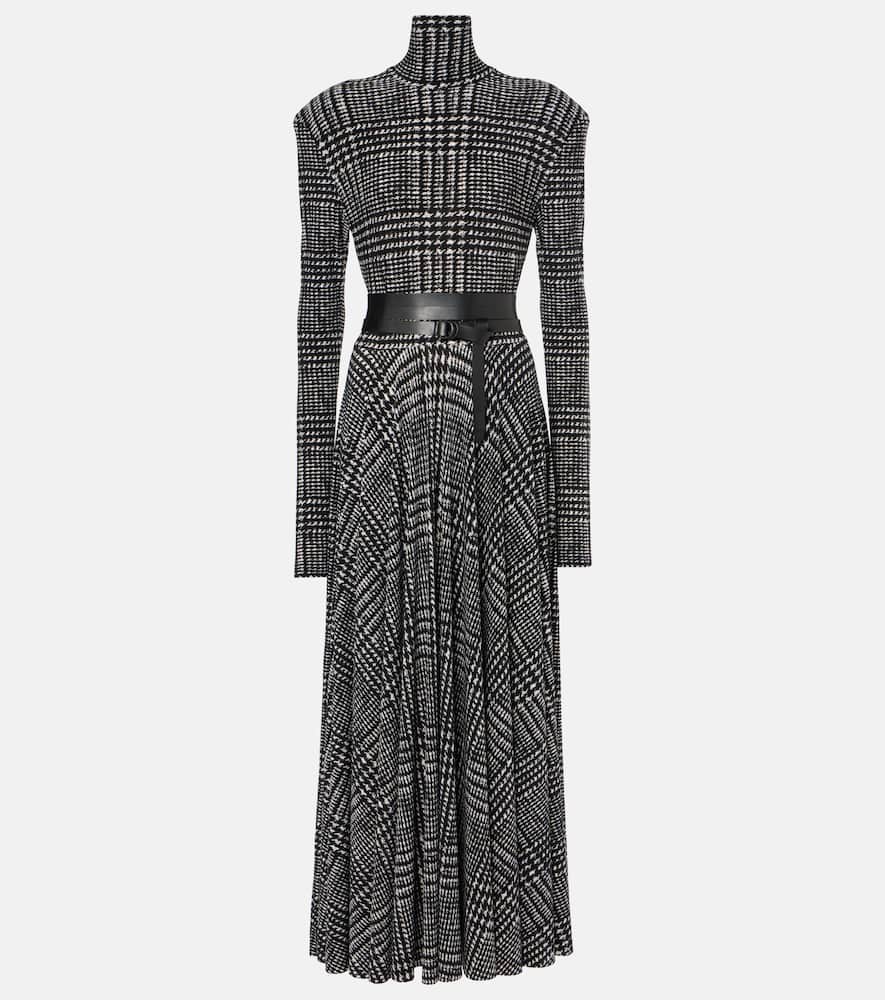 Material: 95% polyester, 5% elastane. Care instructions: machine wash cold. Made in China. Designer color name: GLEN PLAID. Closure: invisible zipper. Attached belt. Shoulder pads. Shop the latest Norma Kamali Midi Dresses for women.