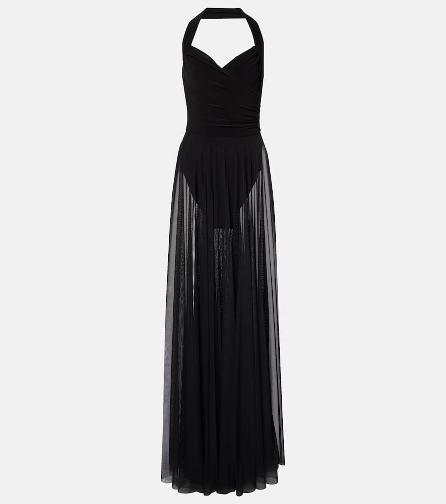 Norma Kamali Cayla draped mesh maxi dress