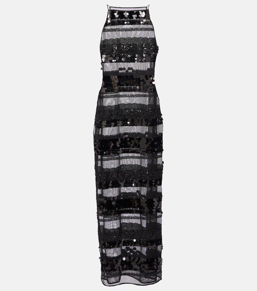 Oseree Sequined striped maxi dress