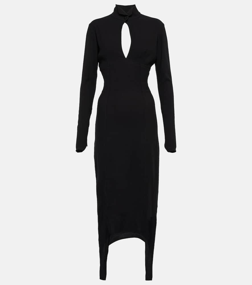 Made in Bulgaria. Material: 59% viscose, 40% cotton, 1% elastane. Closure: zipped back. Designer color name: Black. Care instructions: dry clean. Shop the latest Patou Midi Dresses for women.