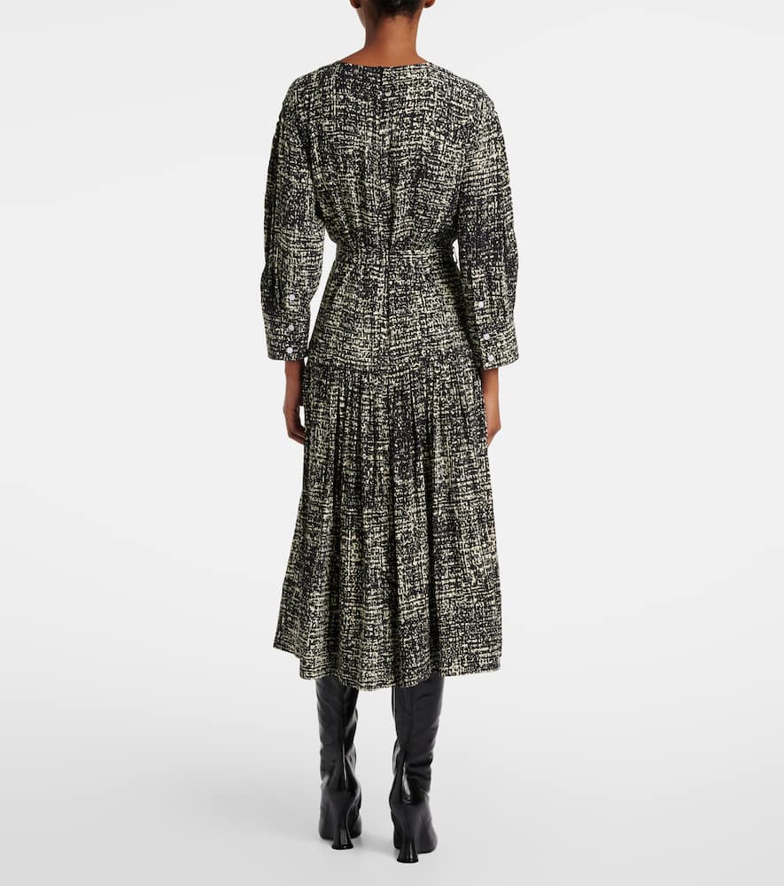 Material: 100% viscose. Care instructions: dry clean. Made in China. Designer color name: Black Multi. Closure: zipped back. Detachable belt. Shop the latest Proenza Schouler Midi Dresses now.