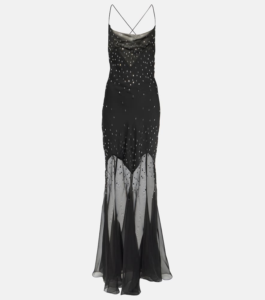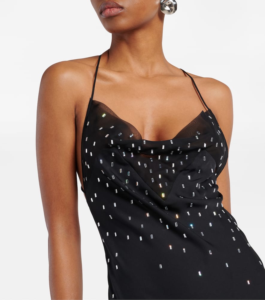 Material: 100% polyester (recycled). Care instructions: hand wash. Made in Tunisia. Designer color name: Black. Material II: 95% cotton (organic), 5% nylon. Lace: 100% polyamide. Closure: concealed zipper. Shop the latest Rabanne Maxi Dresses for women.