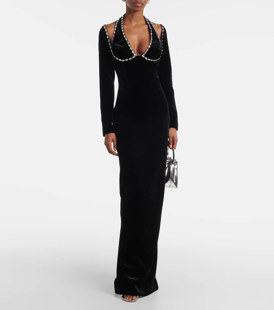 Material: 60% viscose, 40% silk. Care instructions: dry clean. Made in Turkey. Designer color name: Black. Closure: zipped back. Lining: 98% polyester, 2% elastane. Shop the latest Rasario Maxi Dresses now.
