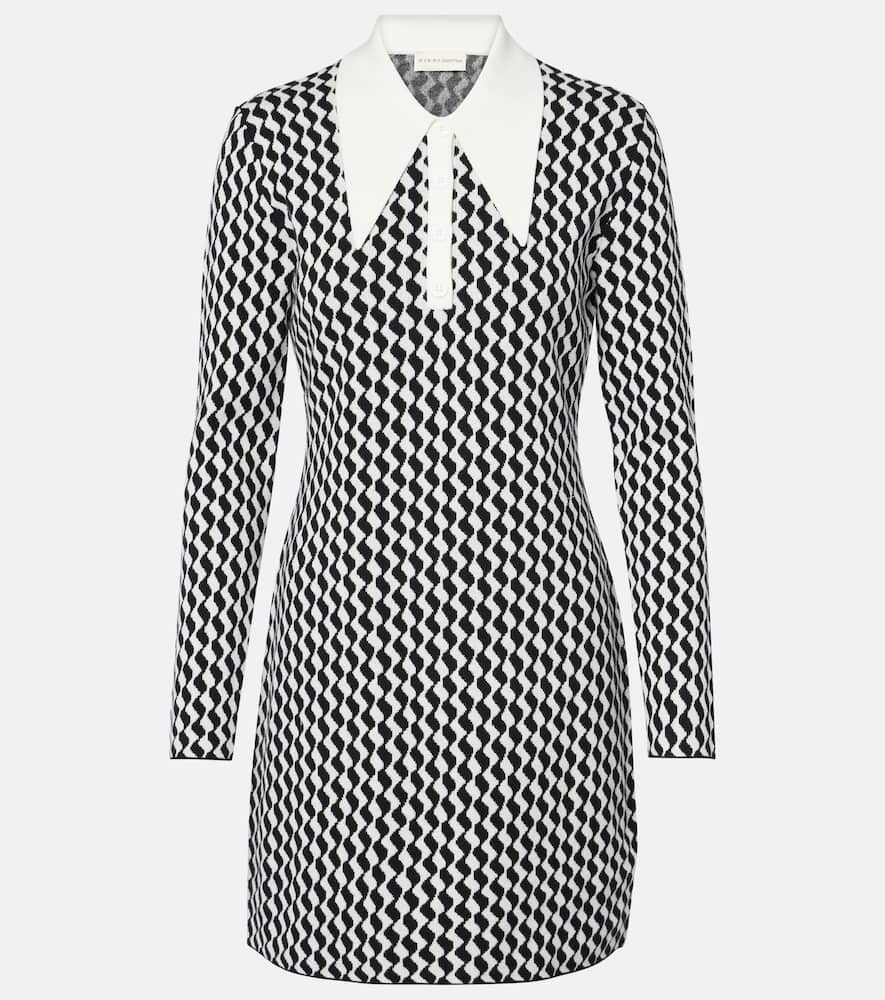 Material: 70% cotton, 20% nylon, 10% silk. Care instructions: machine wash at 30 degrees. Made in China. Designer color name: Black White. Closure: half-buttoned front. Collar: polo collar. Shop the latest Rixo Mini Dresses for women.