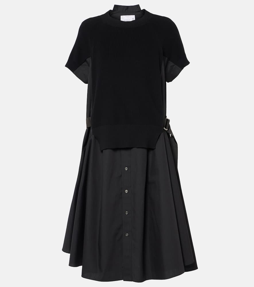 Sacai Striped jersey and poplin shirt dress
