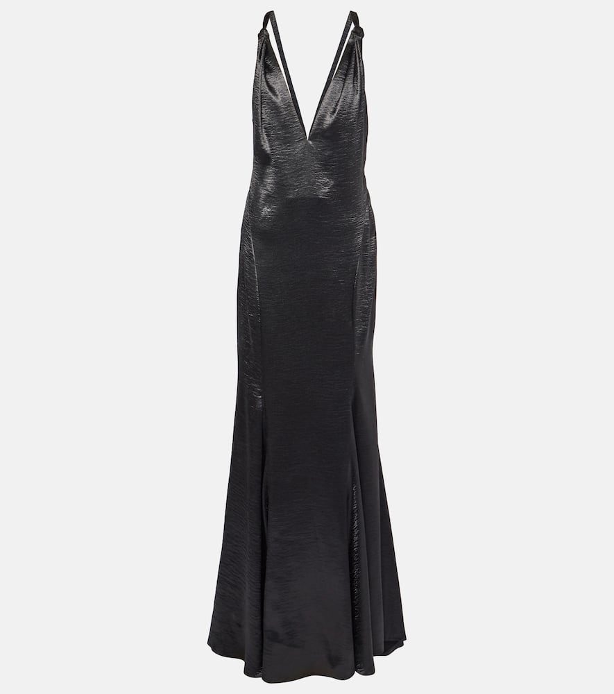 Material: 100% polyester. Care instructions: spot clean. Made in Lithuania. Designer color name: Black. Lining: 97% polyester, 3% elastane. Closure: concealed zipper. Material II: 88% nylon, 12% elastane. Shop the latest Safiyaa Maxi Dresses for women.