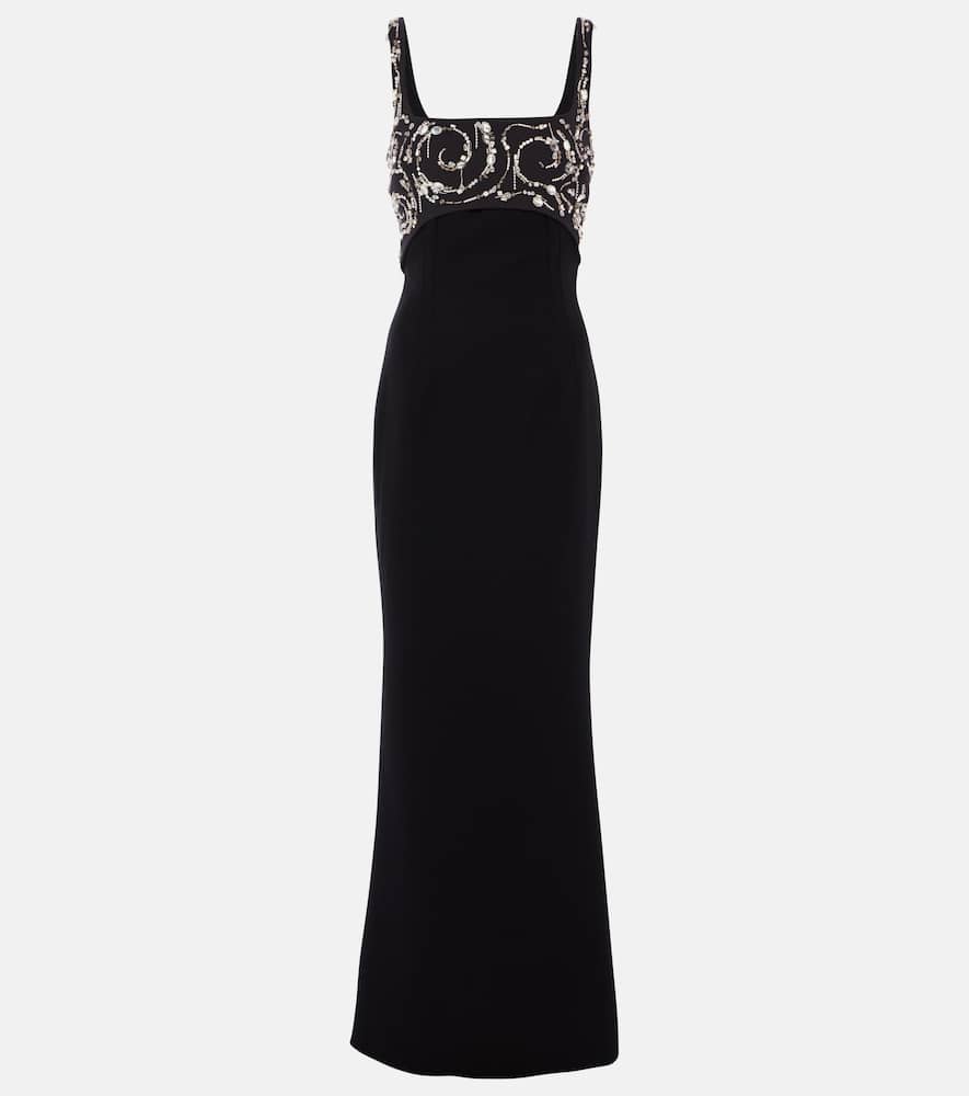 Material: 92% polyester, 8% elastane. Care instructions: dry clean. Made in Lithuania. Designer color name: Black On Black With Crstl Smok. Lining: 97% polyester, 3% elastane. Trim: 50% resin, 25% glass, 25% metal. Closure: zipper, hook fastening. Shop the latest Safiyaa Maxi Dresses for women.