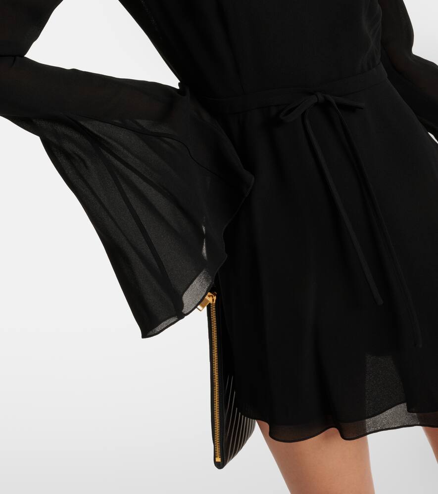 Lining: 100% silk, partially lined. Self-tie neck. Made in Italy. Designer color name: Noir. Closure: zipped side, hook fastening. Material: 100% viscose. Care instructions: dry clean. Shop the latest Saint Laurent Mini Dresses for women.