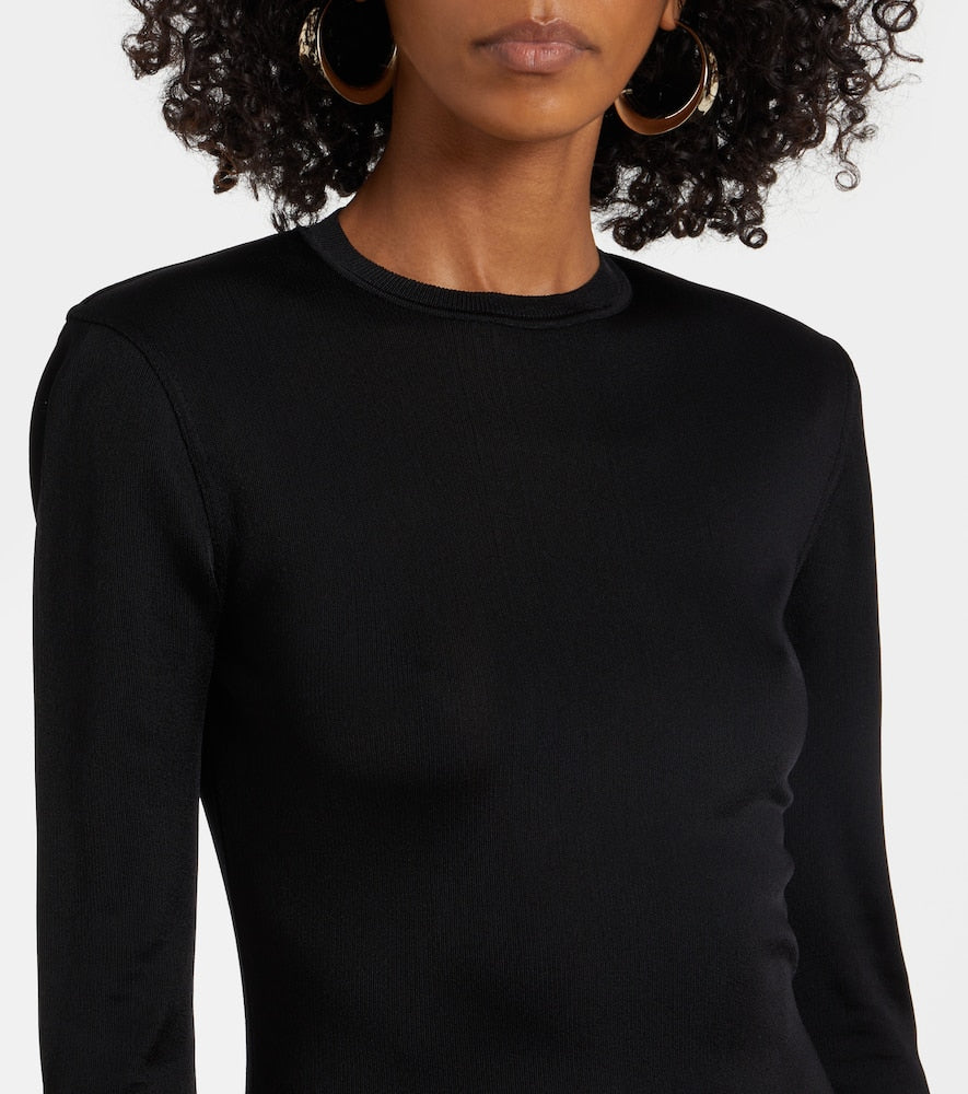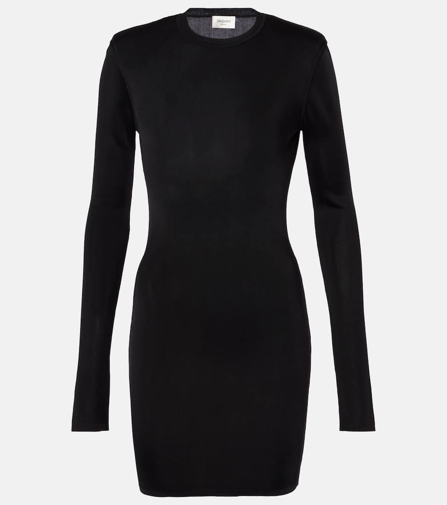 Material: 100% viscose. Care instructions: dry clean. Made in Italy. Designer color name: Noir. Shoulder pads. Collar: crewneck. Sleeves: long-sleeved. Shop the latest Saint Laurent Mini Dresses for women.