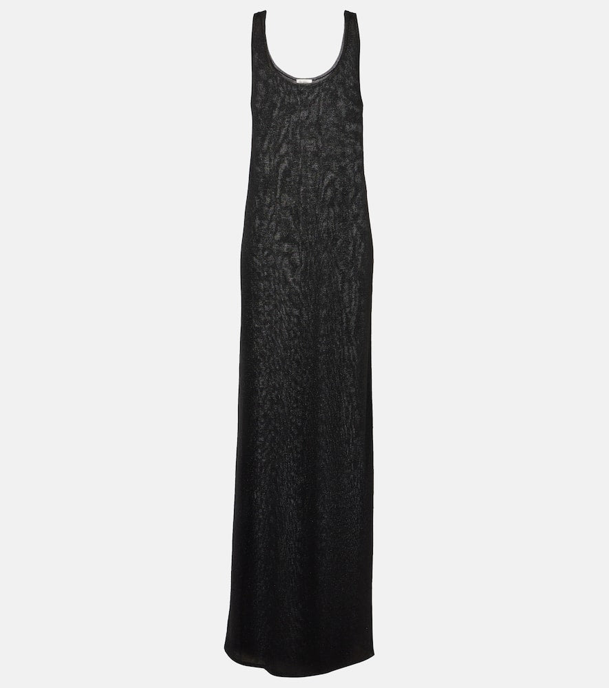 Material: 70% viscose, 15% polyester, 15% metallic fibres. Care instructions: dry clean. Made in Italy. Designer color name: Noir/Noir Brillant. Shop the latest Saint Laurent Maxi Dresses for women.
