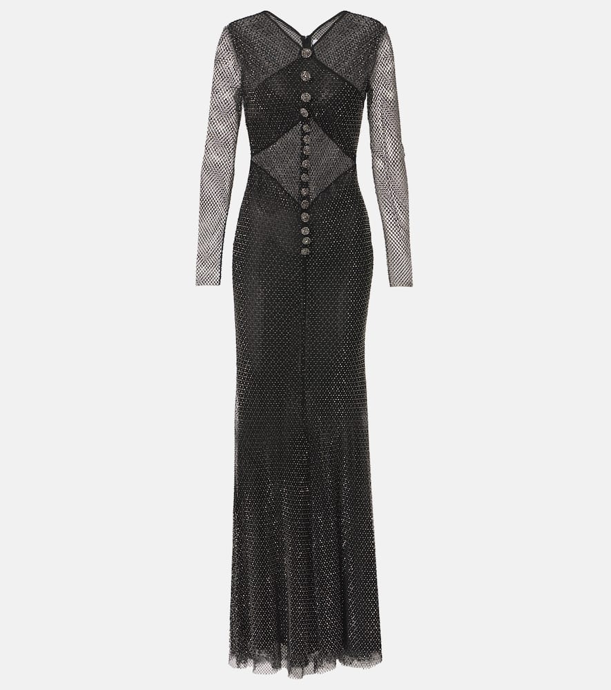 Material: 97% polyester, 3% elastane. Care instructions: dry clean. Made in China. Designer color name: Black. Lining: 95% polyester, 5% elastane. Lining II: 87% polyester, 13% elastane. Closure: invisible zipper, zipper, hook fastening. Shop the latest Self-Portrait Maxi Dresses for women.